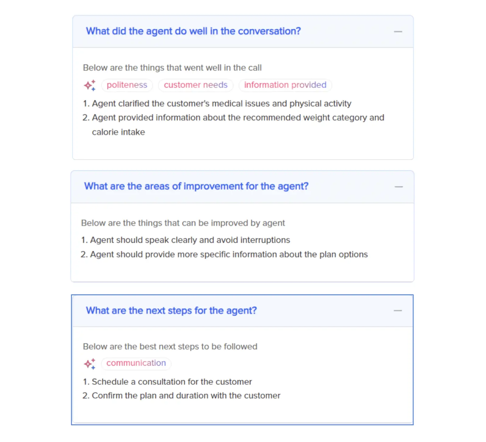 3. Automated Coaching: AI-driven call center solutions offer automated coaching by analyzing ongoing interactions and providing agents with real-time tips and suggestions. This helps agents improve their performance during live calls without waiting for post-call reviews.