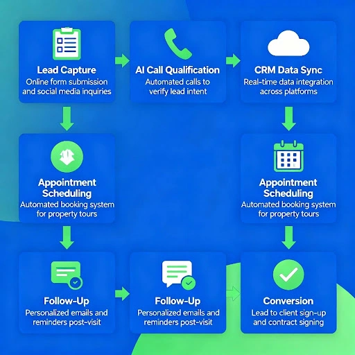 AI property appointment scheduling automates booking showings and consultations, reducing agent workload and eliminating scheduling errors.