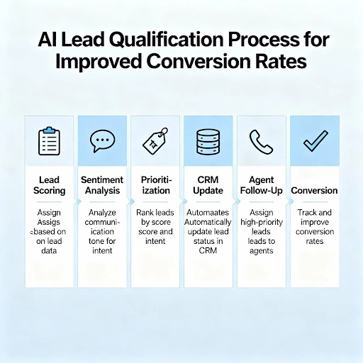 AI lead qualification software rapidly evaluates lead quality based on interactions, enabling agents to focus their efforts on high-potential prospects. This improves conversion rates and shortens sales cycles.