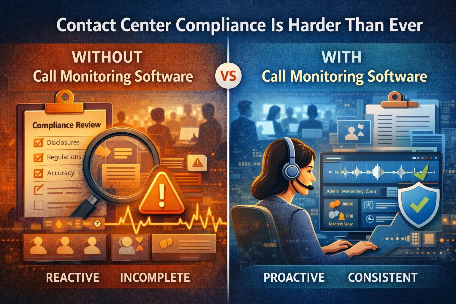 Insurance compliance teams aren’t losing sleep because they don’t care enough. They’re losing sleep because too much happens on calls that they never hear. From policy disclosures to exclusions and eligibility clauses, what agents say and don’t say, carries real regulatory and financial risk. Call monitoring software has quietly become the difference between assumed compliance and proven compliance in insurance contact centers.