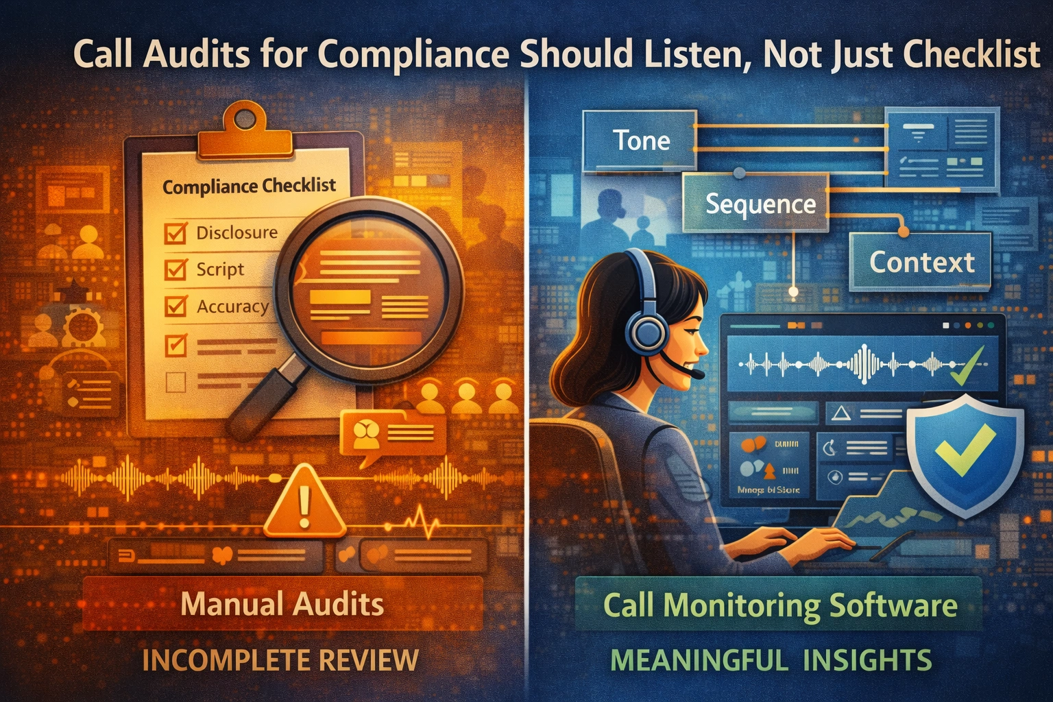 Manual call audits for compliance often focus on checklists rather than customer experience. They miss tone, sequencing, and context; factors regulators increasingly consider.
