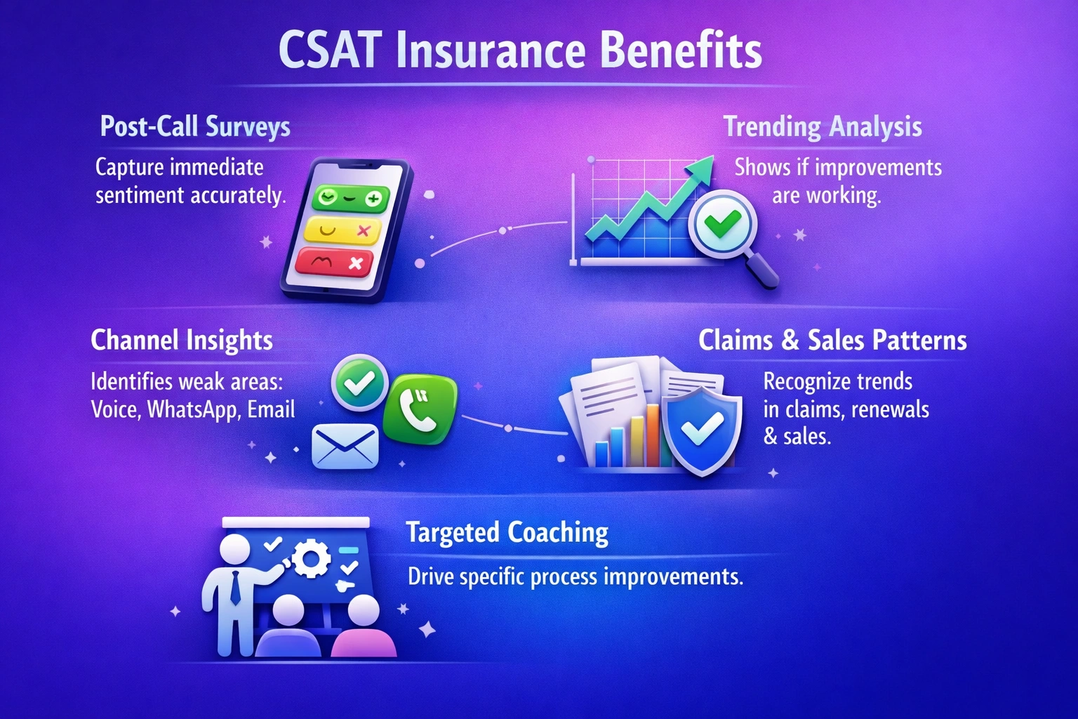 CSAT insurance differs from NPS in insurance by measuring moment-specific satisfaction. A customer may be satisfied with claims processing but frustrated with renewal options. Tracking CSAT insurance across channels reveals which touchpoints need redesign most urgently.