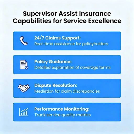 - Supervisor assist insurance enables managers to provide timely support without micromanaging or disrupting workflows unnecessarily.
