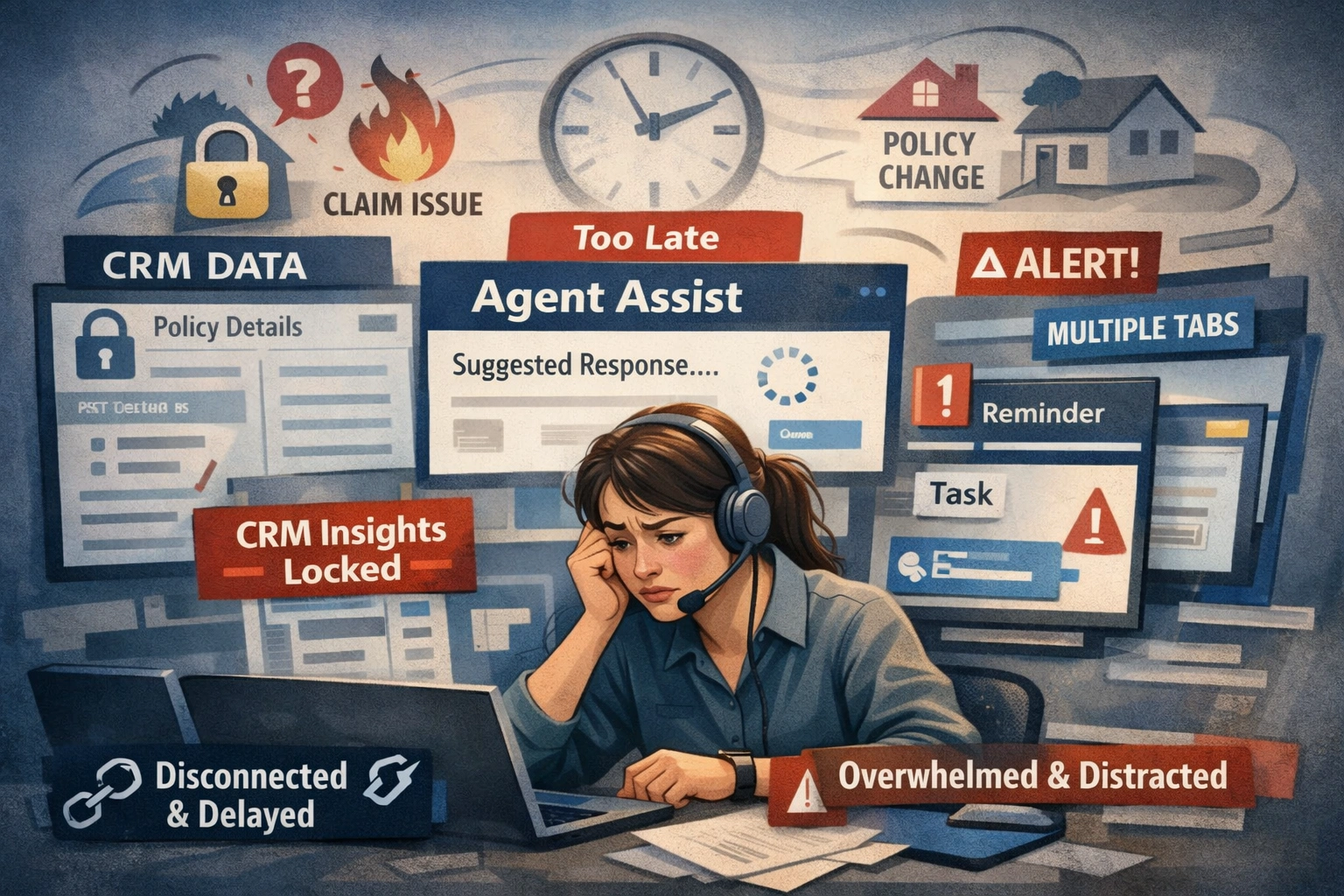 Insurance contact centers don’t have a data problem; they have a delivery problem. CRM insights exist, but they rarely reach agents during live conversations.