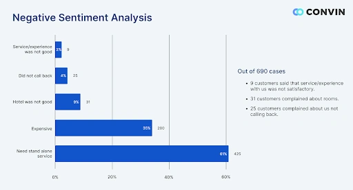 Convin, powered by artificial intelligence, constantly monitors every customer conversation and ensures an accurate sentiment analysis based on the system’s insights. One of Convin’s clients - a hospitality company- found out what negative sentiments their customers were facing.