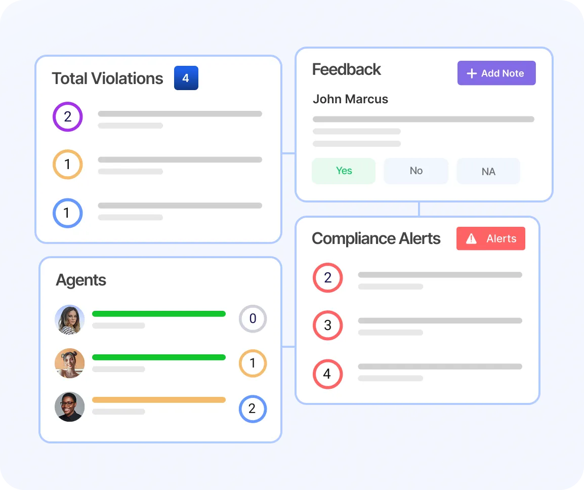 Escalate compliance violations faster and avoid putting the brand reputation at risk. Drive optimal agent performance by tracking top and low-performing agents.