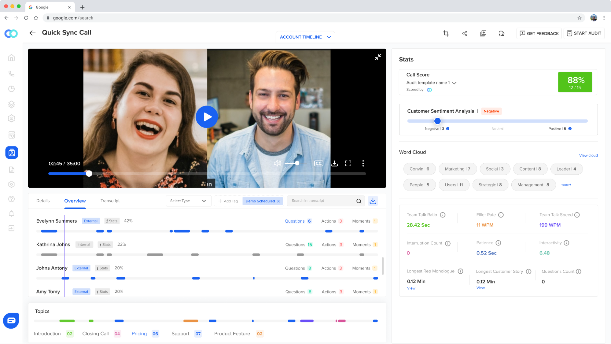 To fill this gap, the best coaches use the right call center coaching tool that automatically records and transcribes each contact center conversation. AI then picks up key phrases to track agent performance and progress that requires minimal effort from your end.
