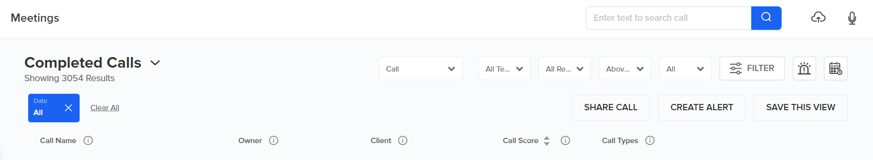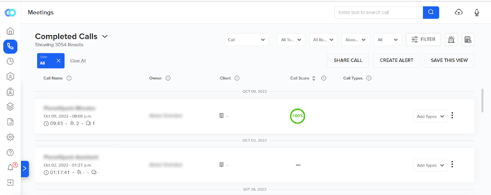 - Open Convin’s call center software and click on “Meetings” in the left panel. You will be navigated to Completed Calls.