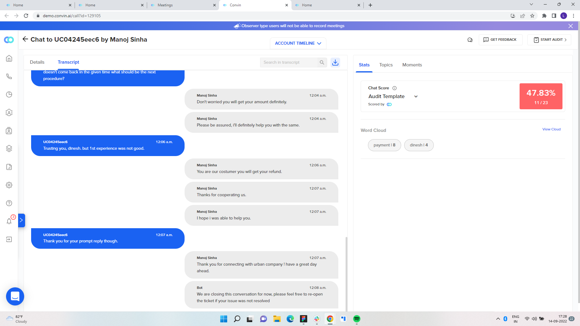 - Select the chat you want to audit.