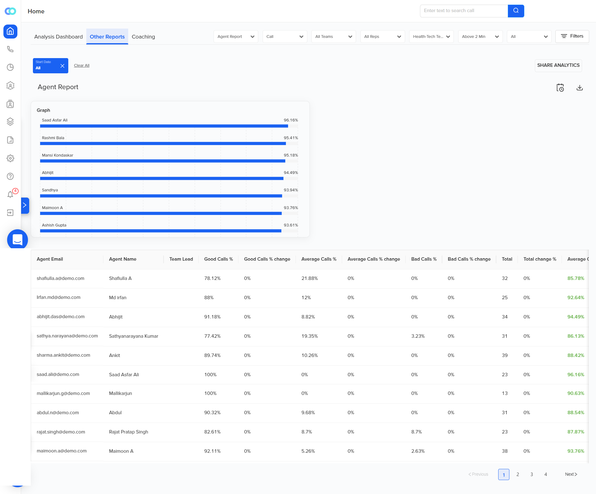 Additionally, with Convin, you can choose multiple new reports on the “Other reports” tab to help you and your team with custom reporting that best suits the unique requirements of your business. You can customize the call center reports according to parameters, agents, teams, and calls. You can also add any of the custom variables to the reports and opt to receive them via email at your convenience.