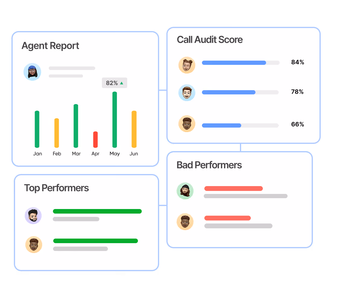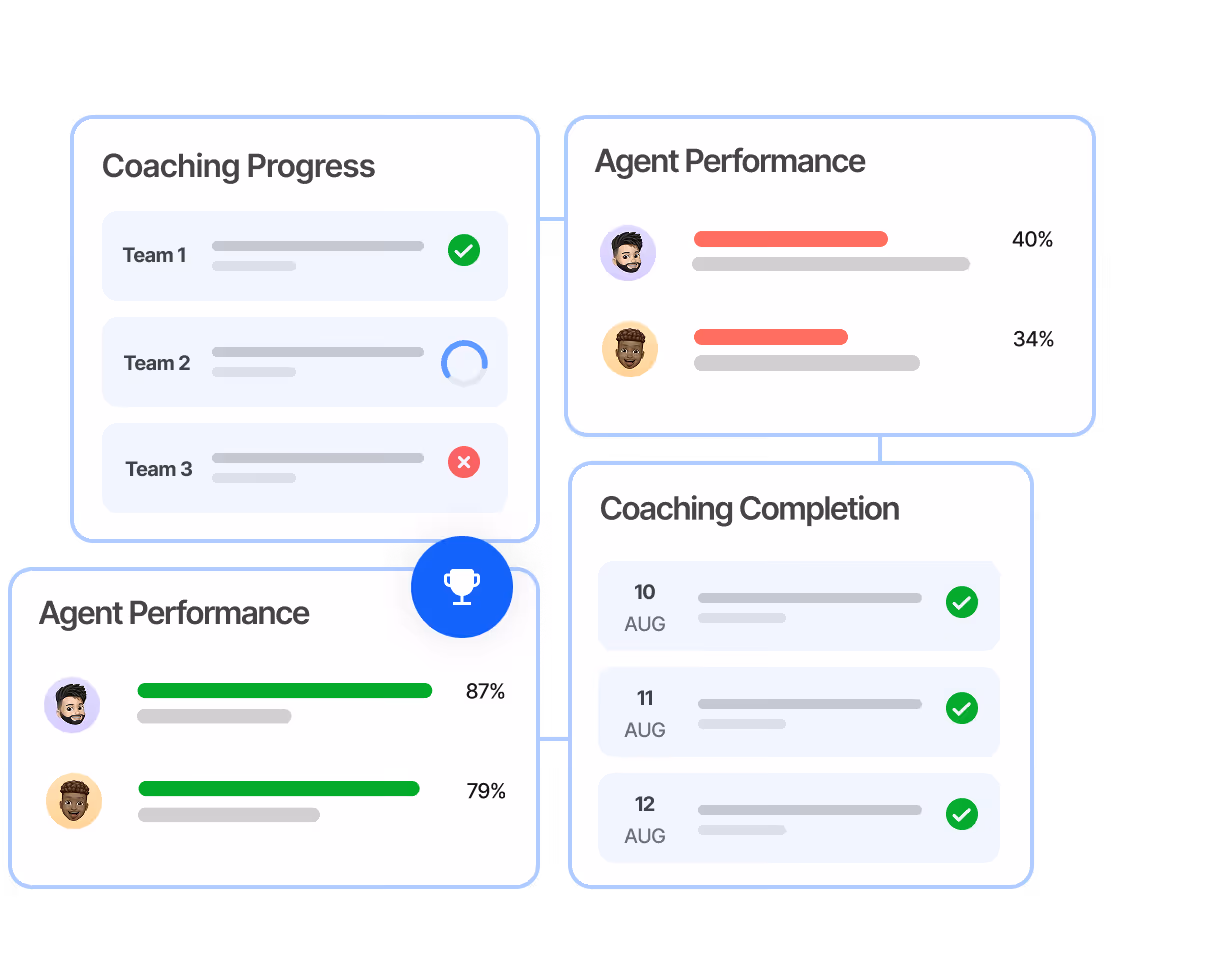 Use dashboards and leaderboards to see who’s improving, who’s stuck, and why. Keep agents motivated with a clear path to targets and recognition for progress.