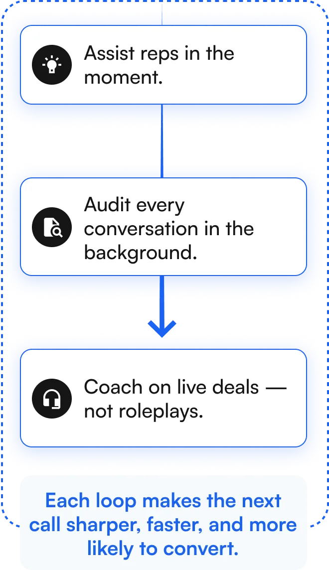 - Encourage automated coaching on critical statements, compliant phrases, and objection handling.