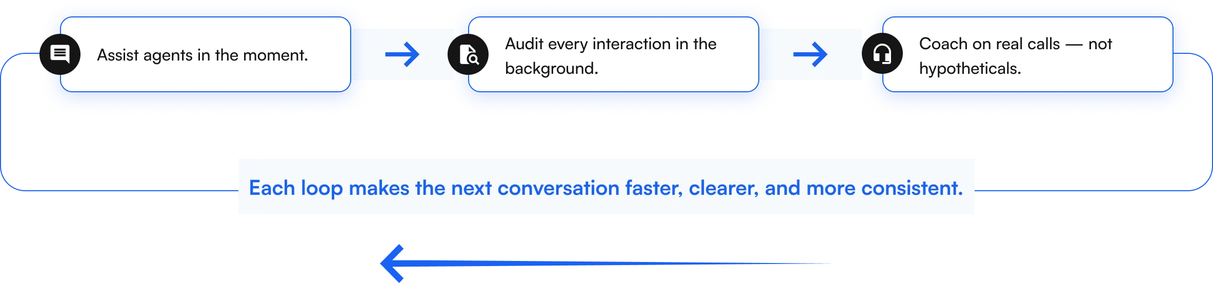 The Real-Time Assist Agent reduces hold time and boosts first-call resolution with on-screen guidance. The Conversation Intelligence Agent reveals gaps so managers can coach with precision.