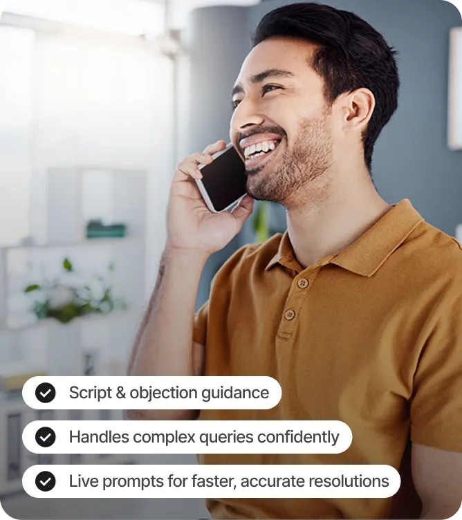 AI-powered real-time assistance that enhances FCR, reduces AHT, and gives agents instant guidance to resolve complex queries faster.